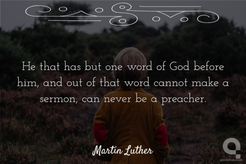 He that has but one word of God before him, and out of that word cannot make a sermon, can never be a preacher. Martin Luther