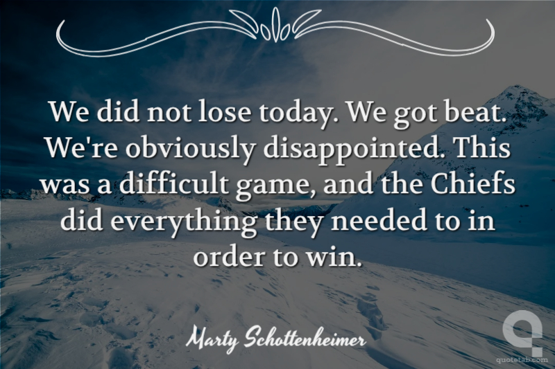 We did not lose today. We got beat. We're obviously disappointed. This was a difficult game, and the Chiefs did everything they needed to in order to win. Marty Schottenheimer