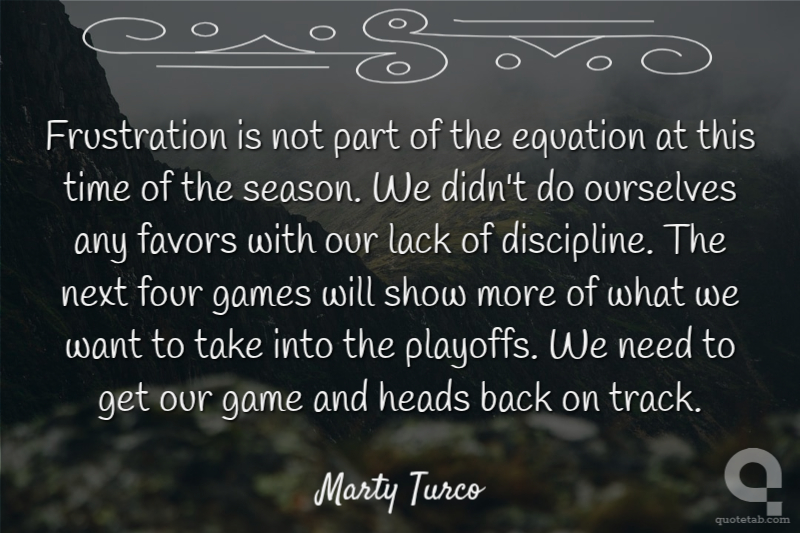 Frustration is not part of the equation at this time of the season. We didn't do ourselves any favors with our lack of discipline. The next four games will show more of what we want to take into the playoffs. We need to get our game and heads back on track. Marty Turco