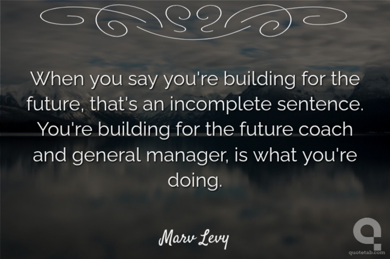 When you say you're building for the future, that's an incomplete sentence. You're building for the future coach and general manager, is what you're doing. Marv Levy