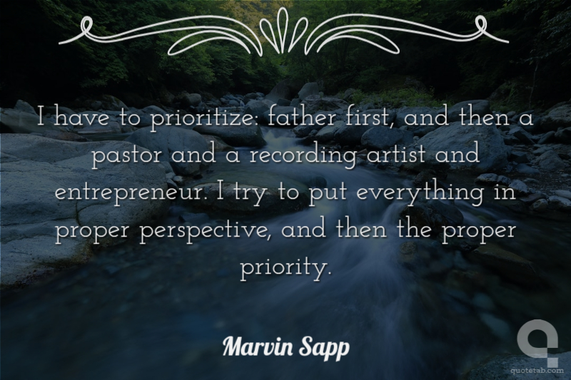 I have to prioritize: father first, and then a pastor and a recording artist and entrepreneur. I try to put everything in proper perspective, and then the proper priority. Marvin Sapp