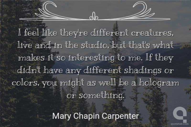 Don't start brooding about that, too," she says. "Everybody's got a piece of stranger inside them. It's what lets us surprise ourselves and keeps things interesting." -Lupita Charles de Lint