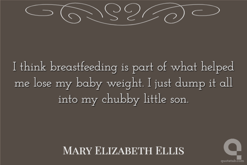 I think breastfeeding is part of what helped me lose my baby weight. I just dump it all into my chubby little son. Mary Elizabeth Ellis