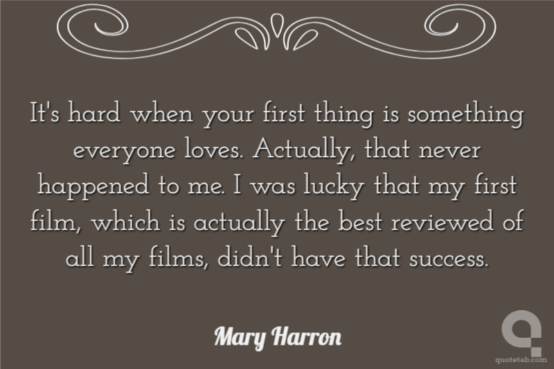 It's hard when your first thing is something everyone loves. Actually, that never happened to me. I was lucky that my first film, which is actually the best reviewed of all my films, didn't have that success. Mary Harron