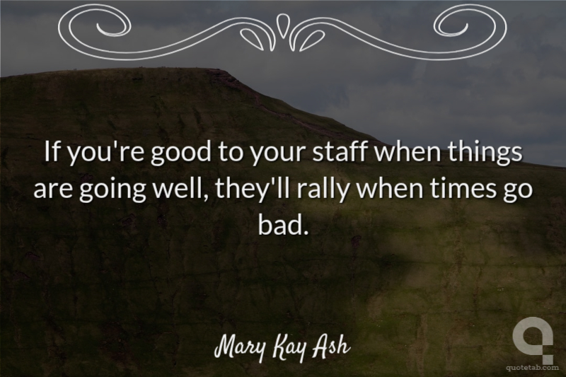 If you're good to your staff when things are going well, they'll rally when times go bad. Mary Kay Ash