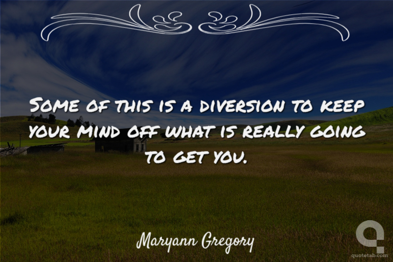 Some of this is a diversion to keep your mind off what is really going to get you. Maryann Gregory