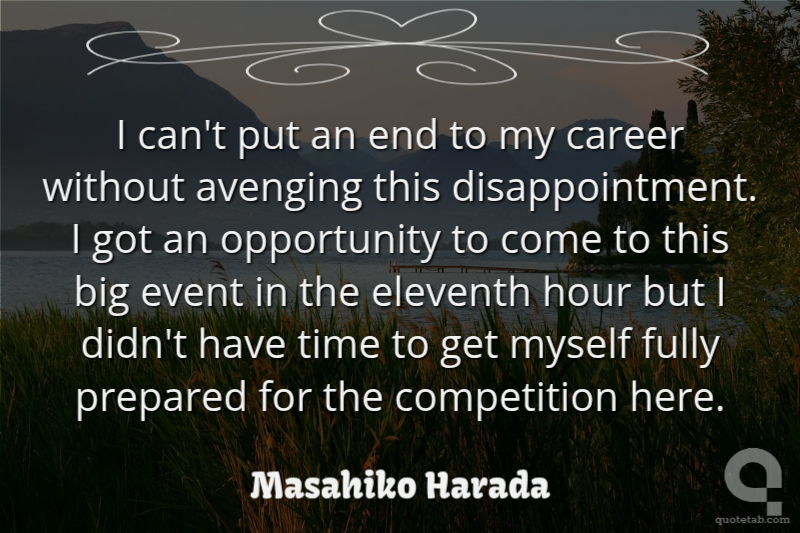 I can't put an end to my career without avenging this disappointment. I got an opportunity to come to this big event in the eleventh hour but I didn't have time to get myself fully prepared for the competition here. Masahiko Harada