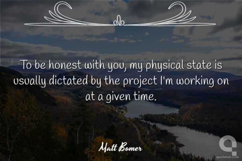 To be honest with you, my physical state is usually dictated by the project I'm working on at a given time. Matt Bomer