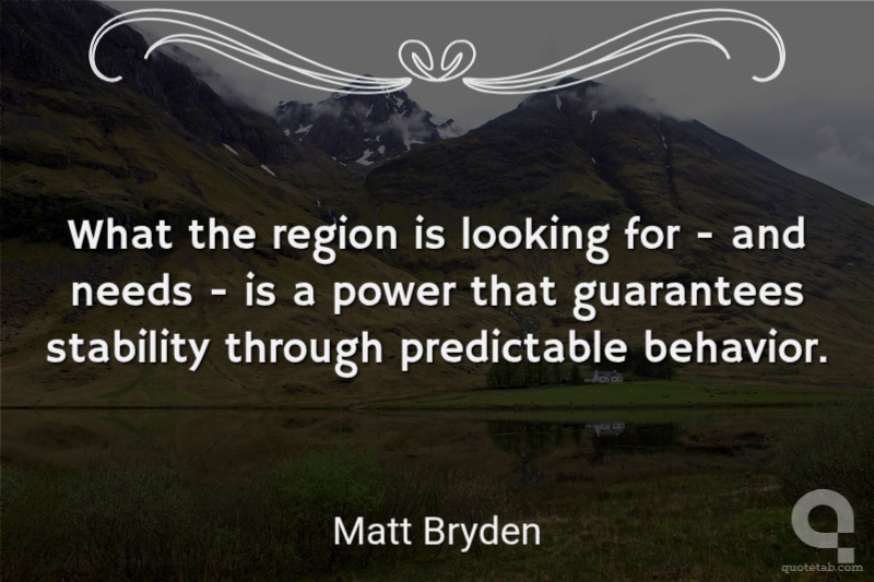 What the region is looking for - and needs - is a power that guarantees stability through predictable behavior. Matt Bryden