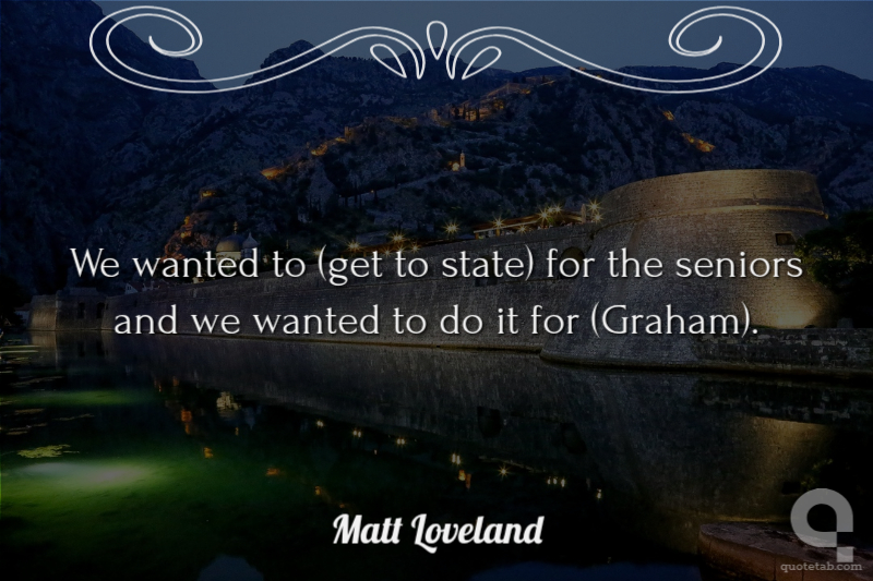 We wanted to (get to state) for the seniors and we wanted to do it for (Graham). Matt Loveland