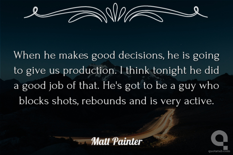 When he makes good decisions, he is going to give us production. I think tonight he did a good job of that. He's got to be a guy who blocks shots, rebounds and is very active. Matt Painter