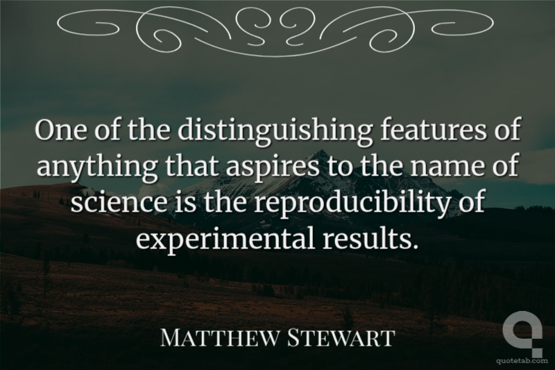 One of the distinguishing features of anything that aspires to the name of science is the reproducibility of experimental results. Matthew Stewart