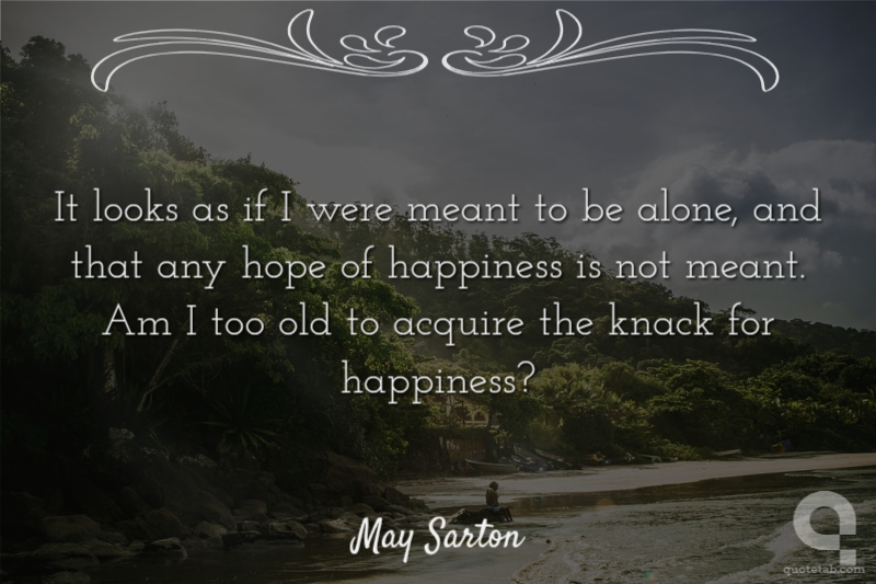 It looks as if I were meant to be alone, and that any hope of happiness is not meant. Am I too old to acquire the knack for happiness? May Sarton