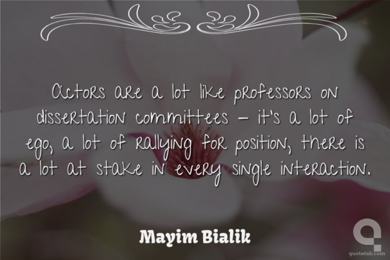 Actors are a lot like professors on dissertation committees - it's a lot of ego, a lot of rallying for position, there is a lot at stake in every single interaction. Mayim Bialik