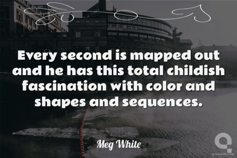 Every second is mapped out and he has this total childish fascination with color and shapes and sequences. Meg White