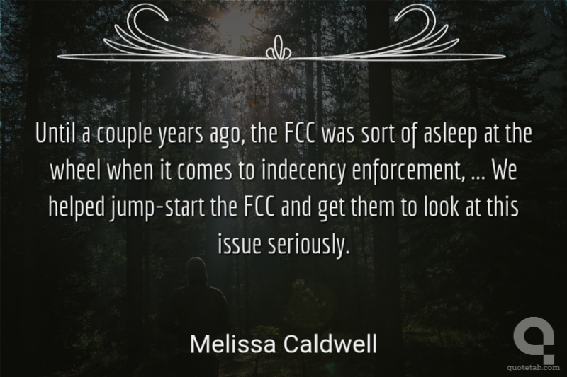 Until a couple years ago, the FCC was sort of asleep at the wheel when it comes to indecency enforcement, ... We helped jump-start the FCC and get them to look at this issue seriously. Melissa Caldwell