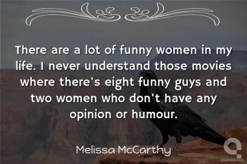 There are a lot of funny women in my life. I never understand those movies where there's eight funny guys and two women who don't have any opinion or humour. Melissa McCarthy