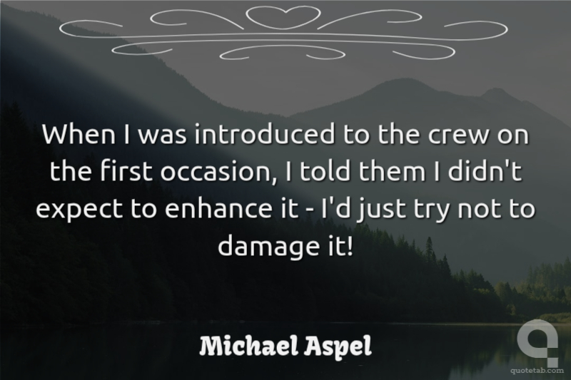 When I was introduced to the crew on the first occasion, I told them I didn't expect to enhance it - I'd just try not to damage it! Michael Aspel
