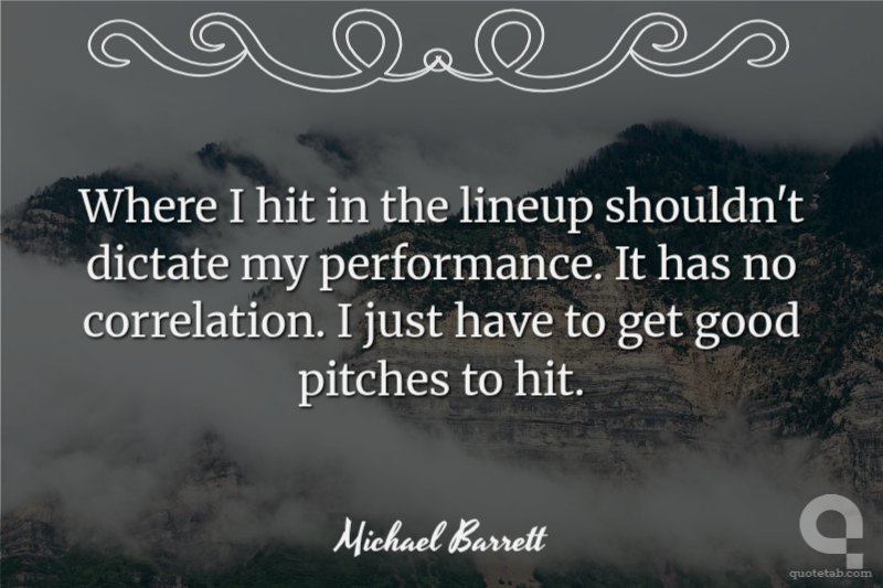 Where I hit in the lineup shouldn't dictate my performance. It has no correlation. I just have to get good pitches to hit. Michael Barrett