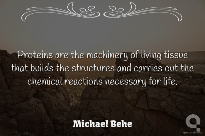 Proteins are the machinery of living tissue that builds the structures and carries out the chemical reactions necessary for life. Michael Behe