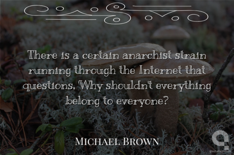 There is a certain anarchist strain running through the Internet that questions, 'Why shouldn't everything belong to everyone? Michael Brown