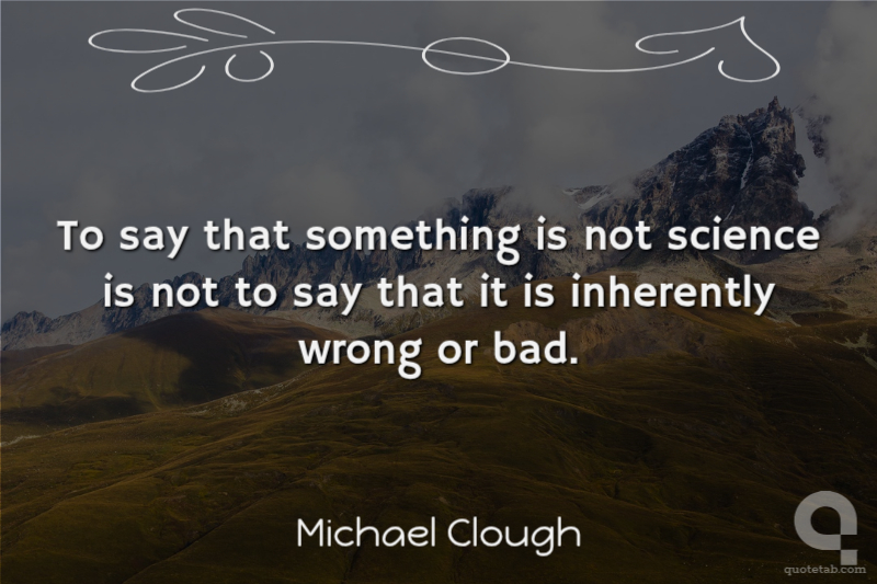 To say that something is not science is not to say that it is inherently wrong or bad. Michael Clough