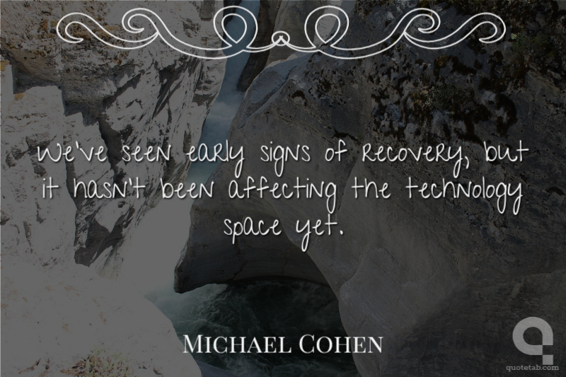 We've seen early signs of recovery, but it hasn't been affecting the technology space yet. Michael Cohen