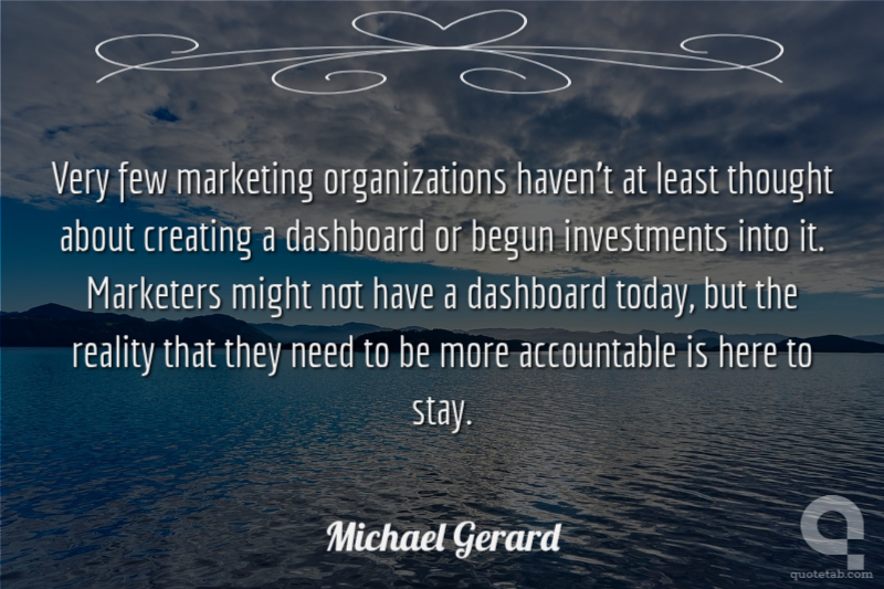 Very few marketing organizations haven't at least thought about creating a dashboard or begun investments into it. Marketers might not have a dashboard today, but the reality that they need to be more accountable is here to stay. Michael Gerard