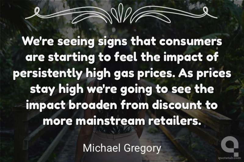 We're seeing signs that consumers are starting to feel the impact of persistently high gas prices. As prices stay high we're going to see the impact broaden from discount to more mainstream retailers. Michael Gregory
