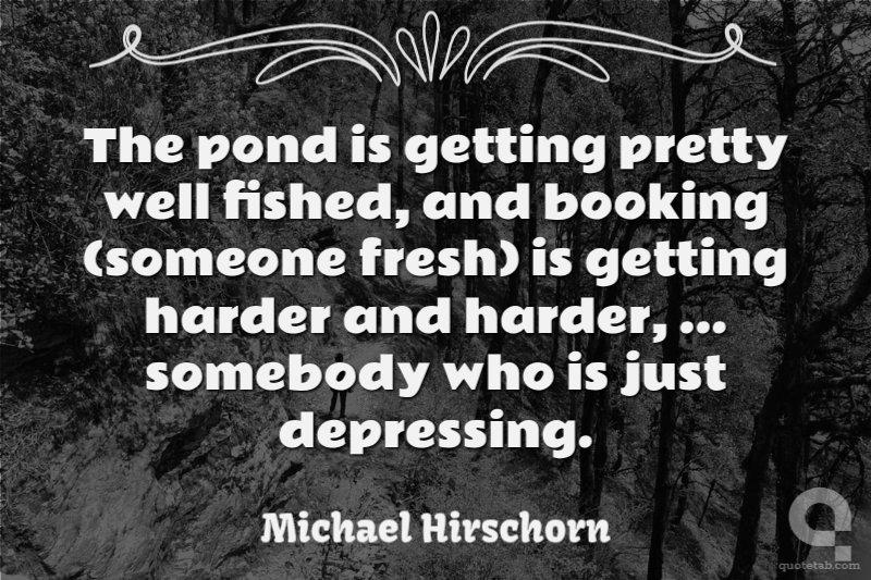 The pond is getting pretty well fished, and booking (someone fresh) is getting harder and harder, ... somebody who is just depressing. Michael Hirschorn