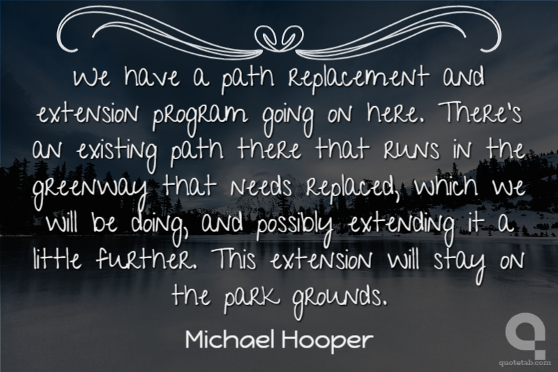 We have a path replacement and extension program going on here. There's an existing path there that runs in the greenway that needs replaced, which we will be doing, and possibly extending it a little further. This extension will stay on the park grounds. Michael Hooper