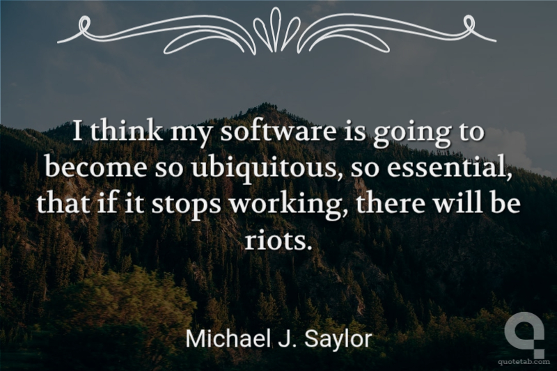 I think my software is going to become so ubiquitous, so essential, that if it stops working, there will be riots. Michael J. Saylor