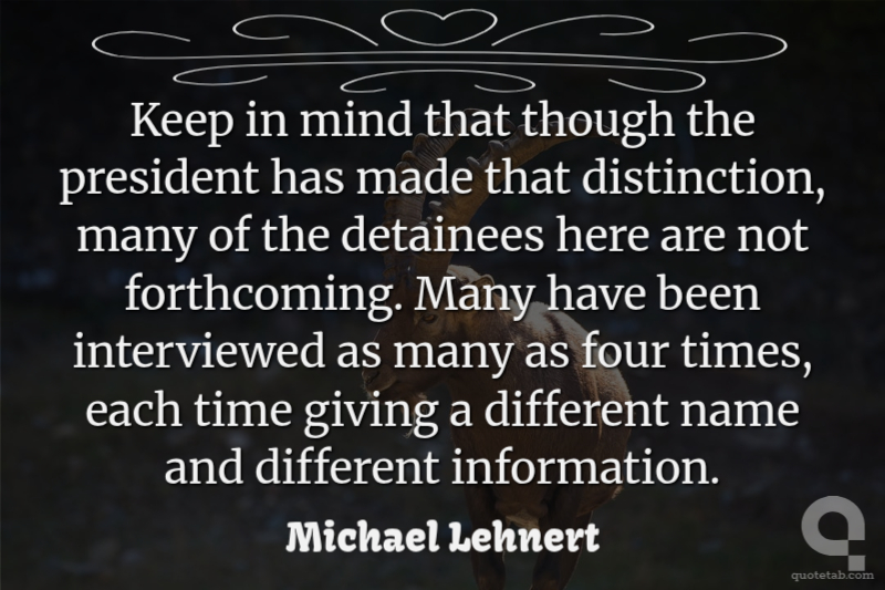 Keep in mind that though the president has made that distinction, many of the detainees here are not forthcoming. Many have been interviewed as many as four times, each time giving a different name and different information. Michael Lehnert