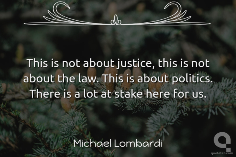 This is not about justice, this is not about the law. This is about politics. There is a lot at stake here for us. Michael Lombardi