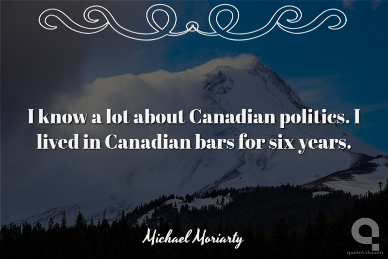 I know a lot about Canadian politics. I lived in Canadian bars for six years. Michael Moriarty