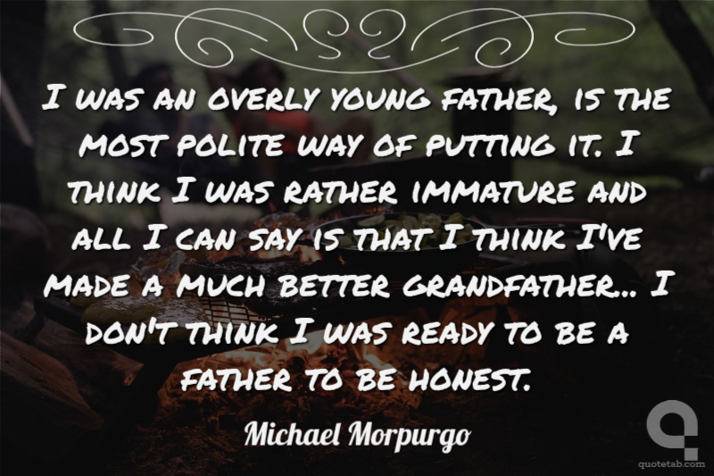 I was an overly young father, is the most polite way of putting it. I think I was rather immature and all I can say is that I think I've made a much better grandfather... I don't think I was ready to be a father to be honest. Michael Morpurgo