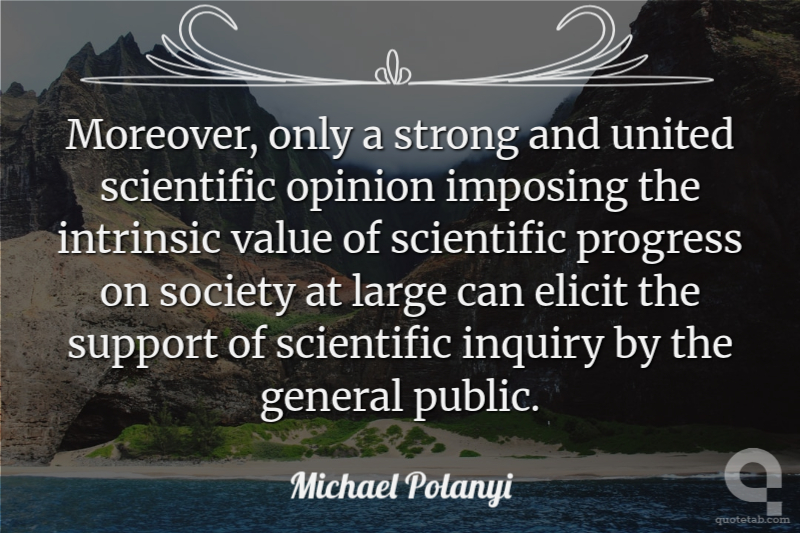 Moreover, only a strong and united scientific opinion imposing the intrinsic value of scientific progress on society at large can elicit the support of scientific inquiry by the general public. Michael Polanyi