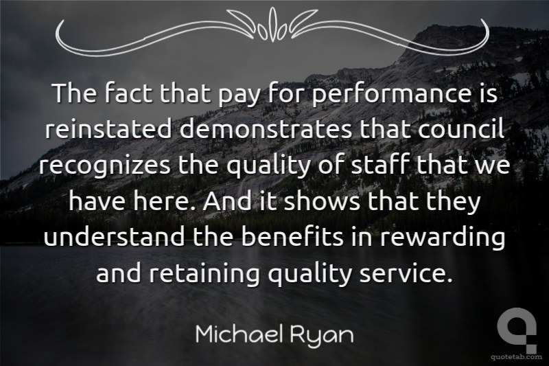 The fact that pay for performance is reinstated demonstrates that council recognizes the quality of staff that we have here. And it shows that they understand the benefits in rewarding and retaining quality service. Michael Ryan