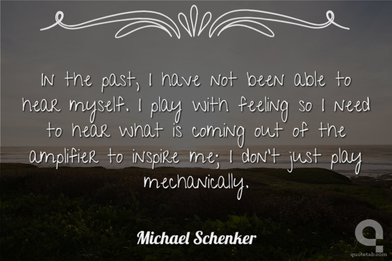 In the past, I have not been able to hear myself. I play with feeling so I need to hear what is coming out of the amplifier to inspire me; I don't just play mechanically. Michael Schenker