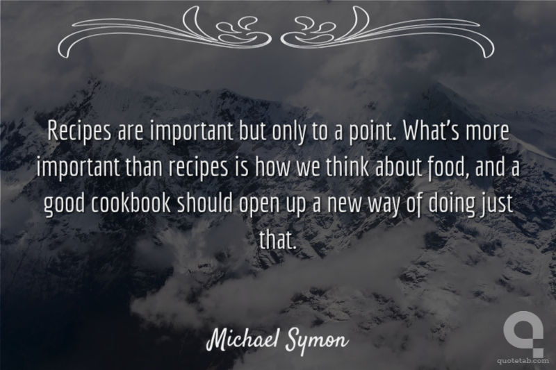 Recipes are important but only to a point. What's more important than recipes is how we think about food, and a good cookbook should open up a new way of doing just that. Michael Symon