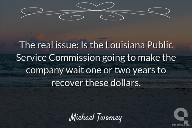 The real issue: Is the Louisiana Public Service Commission going to make the company wait one or two years to recover these dollars. Michael Twomey