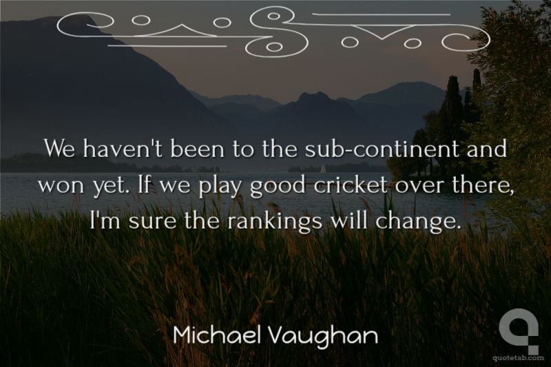 We haven't been to the sub-continent and won yet. If we play good cricket over there, I'm sure the rankings will change. Michael Vaughan