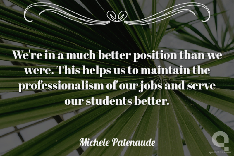 We're in a much better position than we were. This helps us to maintain the professionalism of our jobs and serve our students better. Michele Patenaude