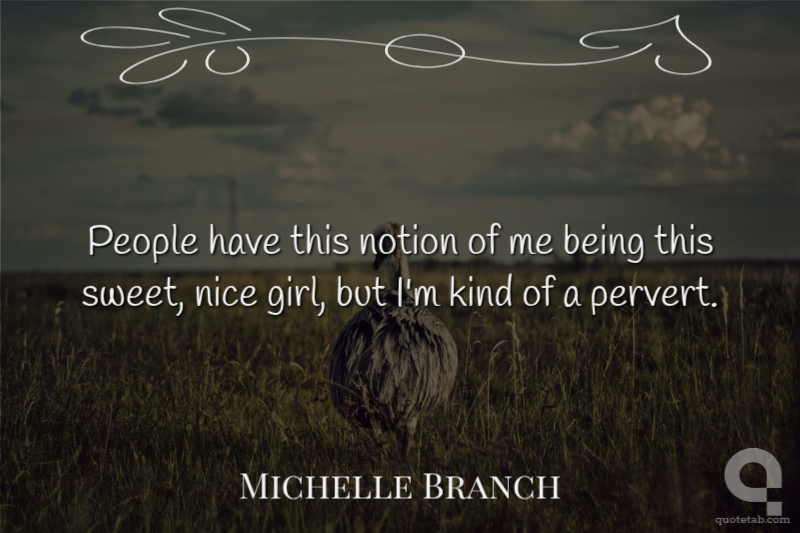 People have this notion of me being this sweet, nice girl, but I'm kind of a pervert. Michelle Branch