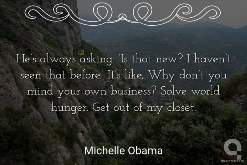 He’s always asking: ‘Is that new? I haven’t seen that before.’ It’s like, Why don’t you mind your own business? Solve world hunger. Get out of my closet. Michelle Obama