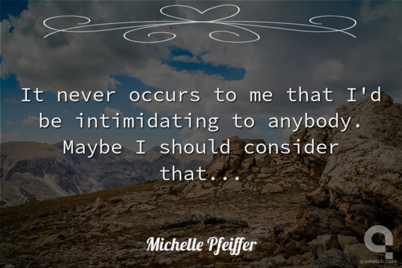 It never occurs to me that I'd be intimidating to anybody. Maybe I should consider that... Michelle Pfeiffer