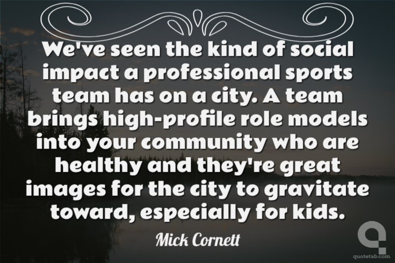 We've seen the kind of social impact a professional sports team has on a city. A team brings high-profile role models into your community who are healthy and they're great images for the city to gravitate toward, especially for kids. Mick Cornett