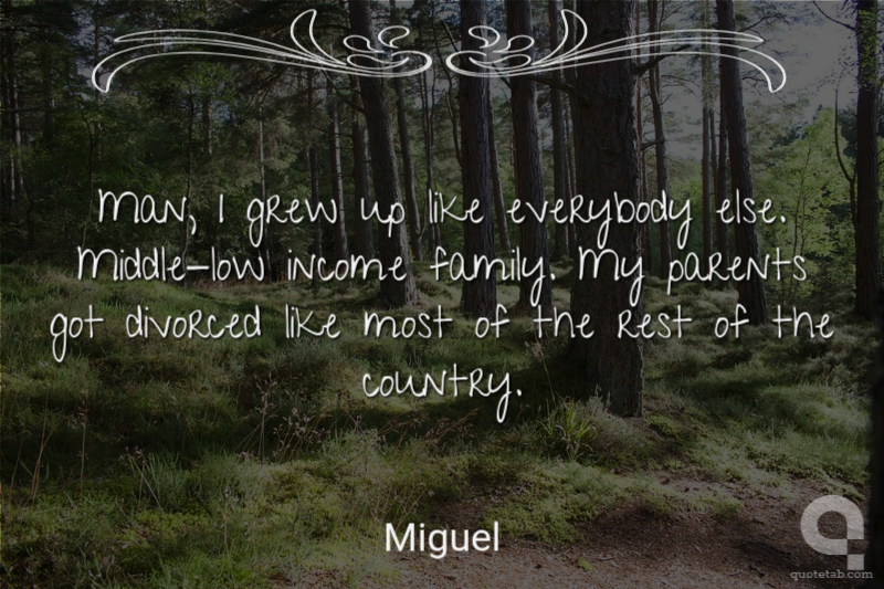 Man, I grew up like everybody else. Middle-low income family. My parents got divorced like most of the rest of the country. Miguel