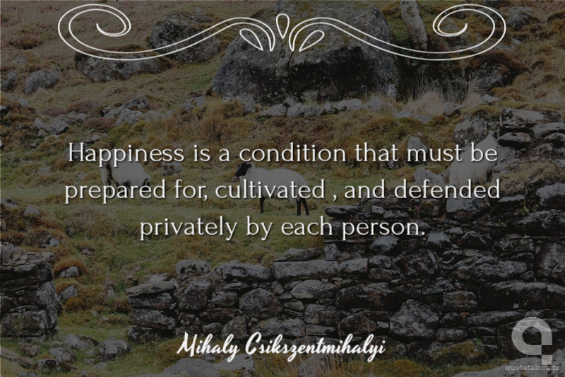 Happiness is a condition that must be prepared for, cultivated , and defended privately by each person. Mihaly Csikszentmihalyi
