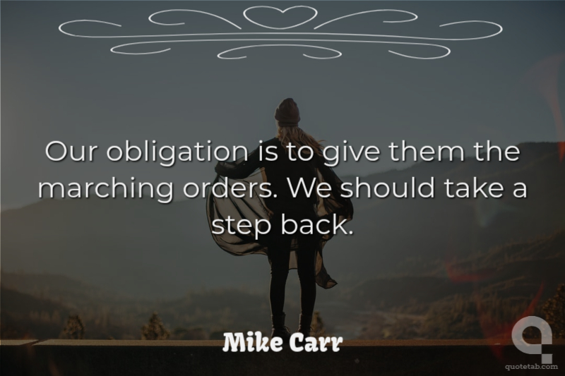 Our obligation is to give them the marching orders. We should take a step back. Mike Carr
